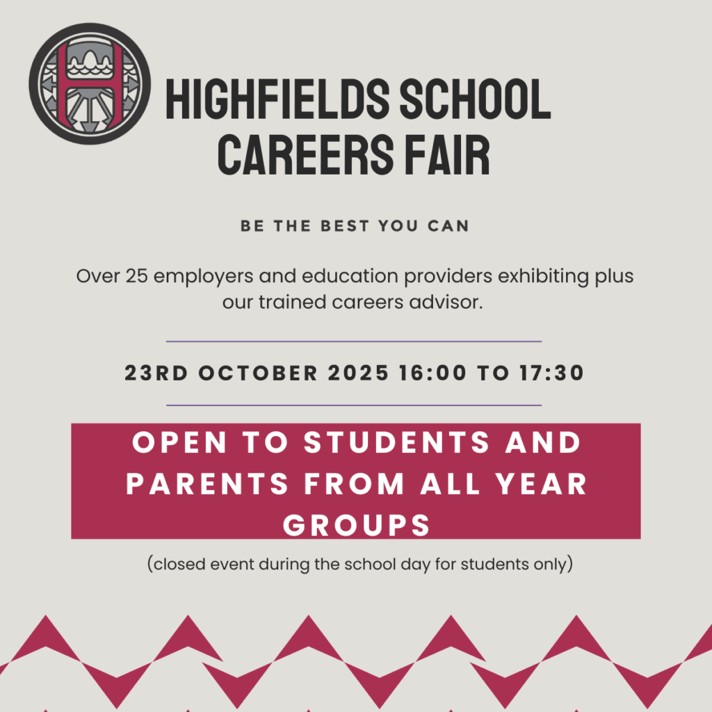 Keep up to date on events like Highfields Careers Fair on our LinkedIn page, or you can contact us at careers@highfields.derbyshire.sch.uk
