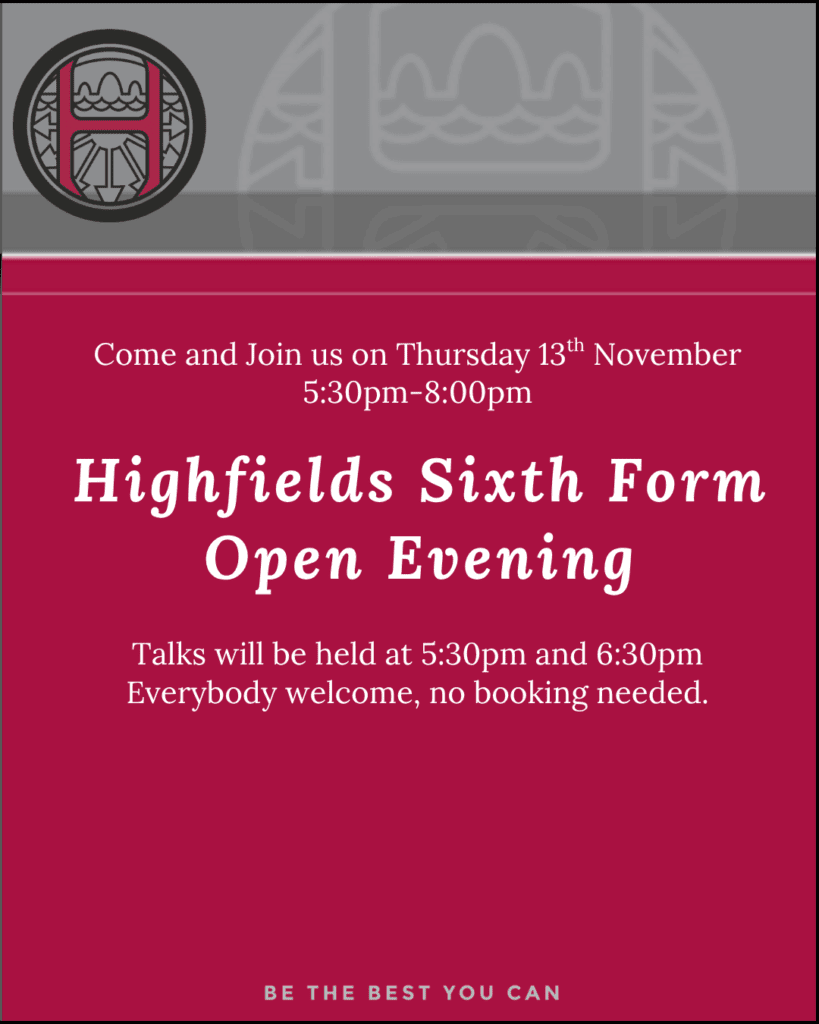 The open evening will be on Thursday 13th November, from 5.30 to 8.00pm Click the link for more information.
